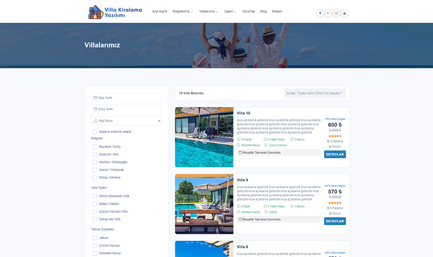 Gelişmiş villa listeleme